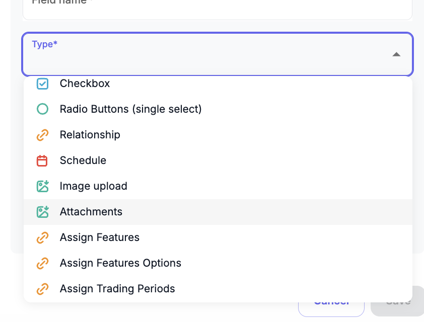 4. Select field type as "Attachments"