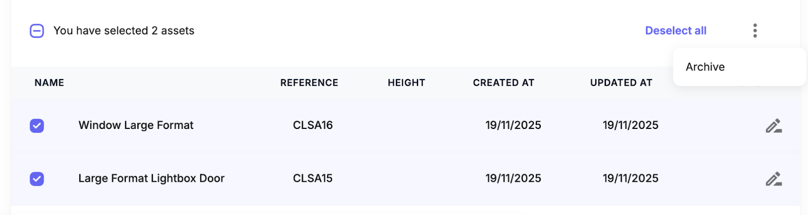 The Asset is moved from the Active tab to the Archived Assets tab.