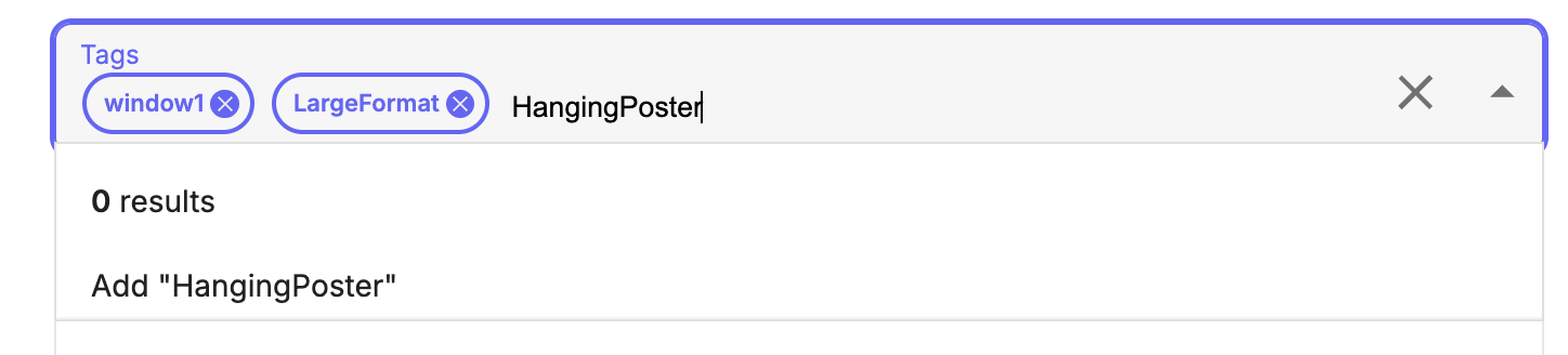Click inside the space and create a new tag by typing in a new tag name (e.g., HangingPoster).