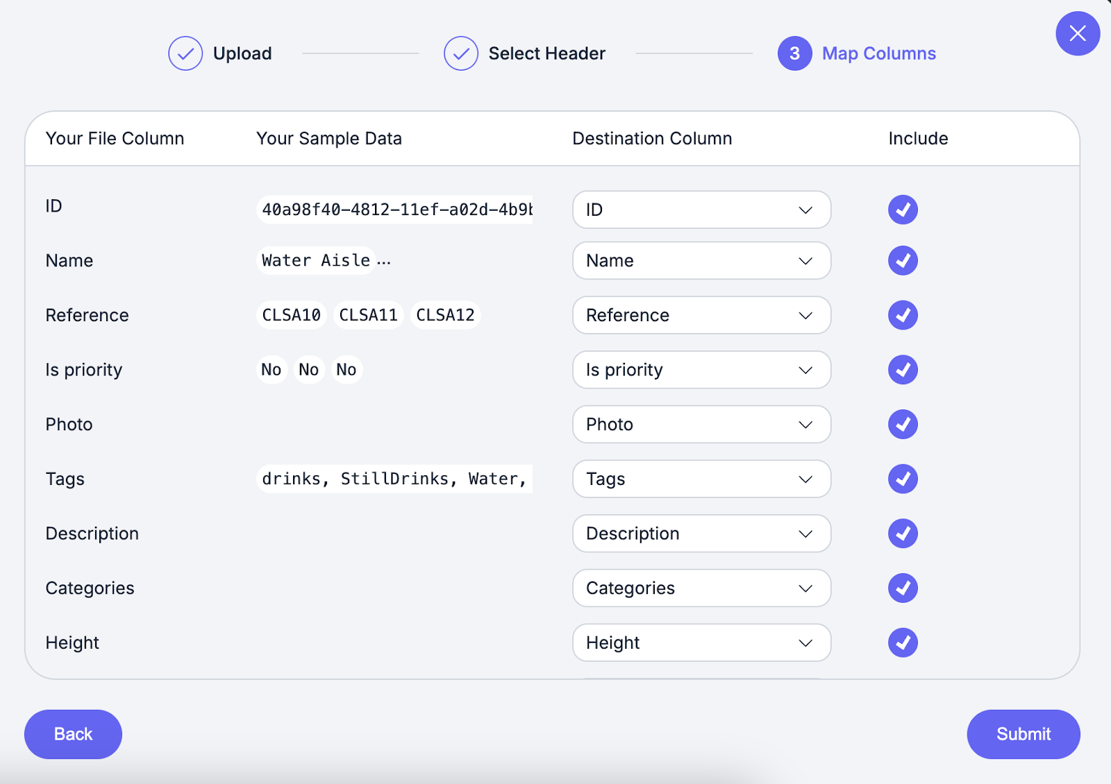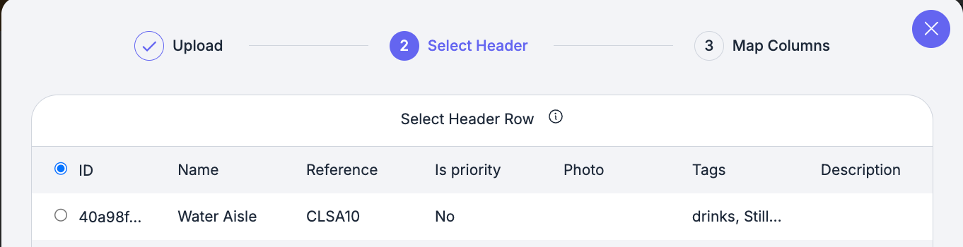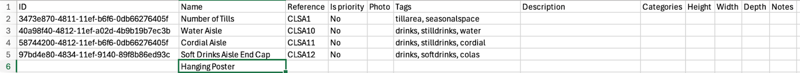 Leave any columns you don’t want to import blank (Only Name field is required for new Asset creations)