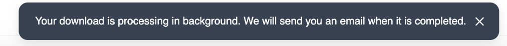 A notification will appear: "Your download is processing in background. We will send you an email when it is completed."