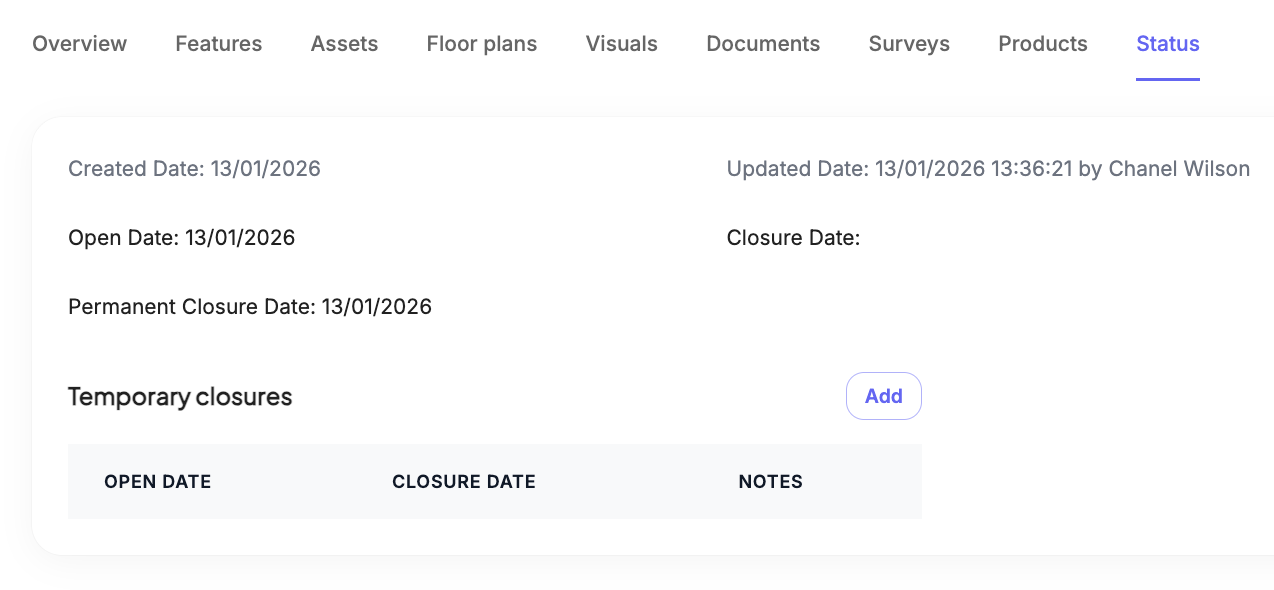 Closed locations are excluded from active selection but retained for reporting and historical data.