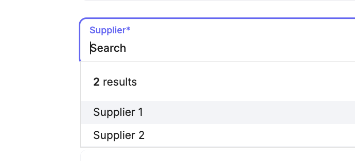 Type the Supplier name or select one from the list (for example, Supplier 1).